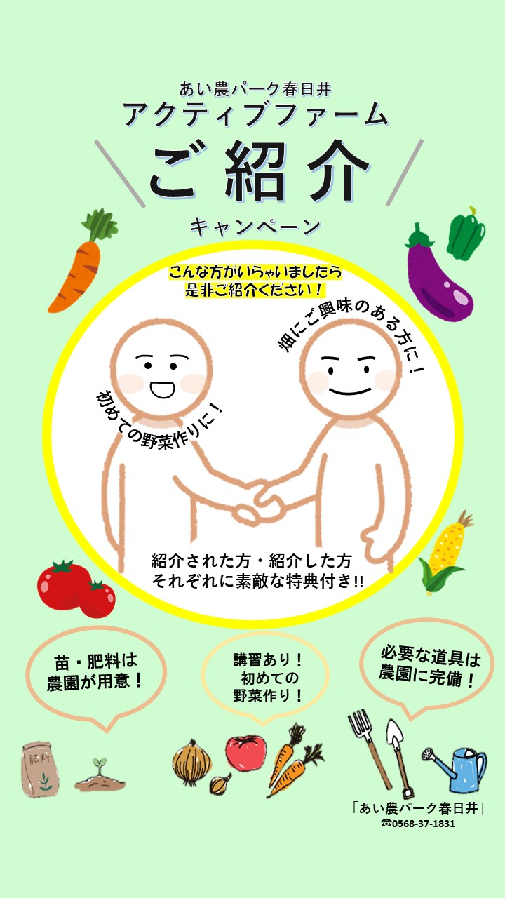 1回45~60分程度で野菜の収穫を体験することができます。未経験でもできる気軽な農業体験をあい農パーク春日井で始めてみませんか?