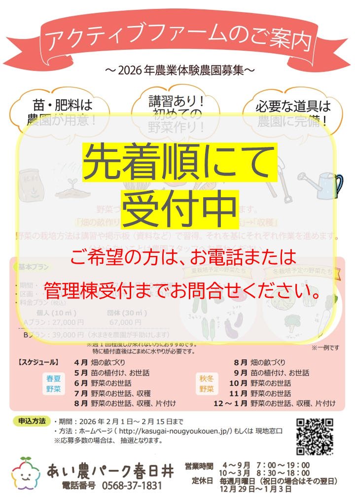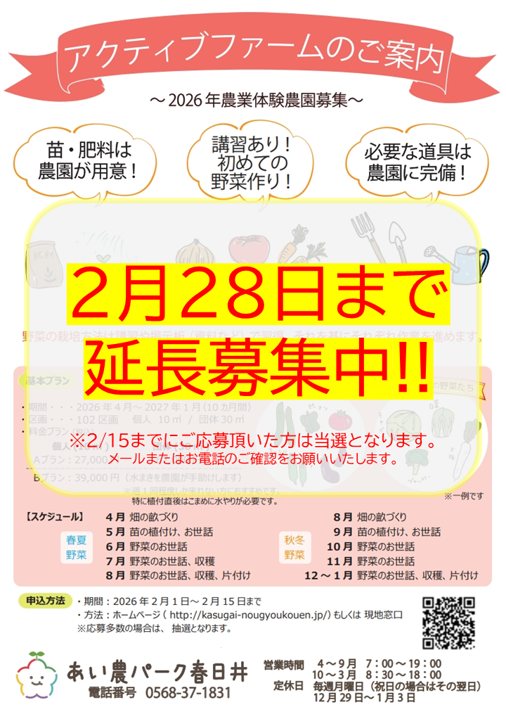 - 2月24日(火)は休園日です。