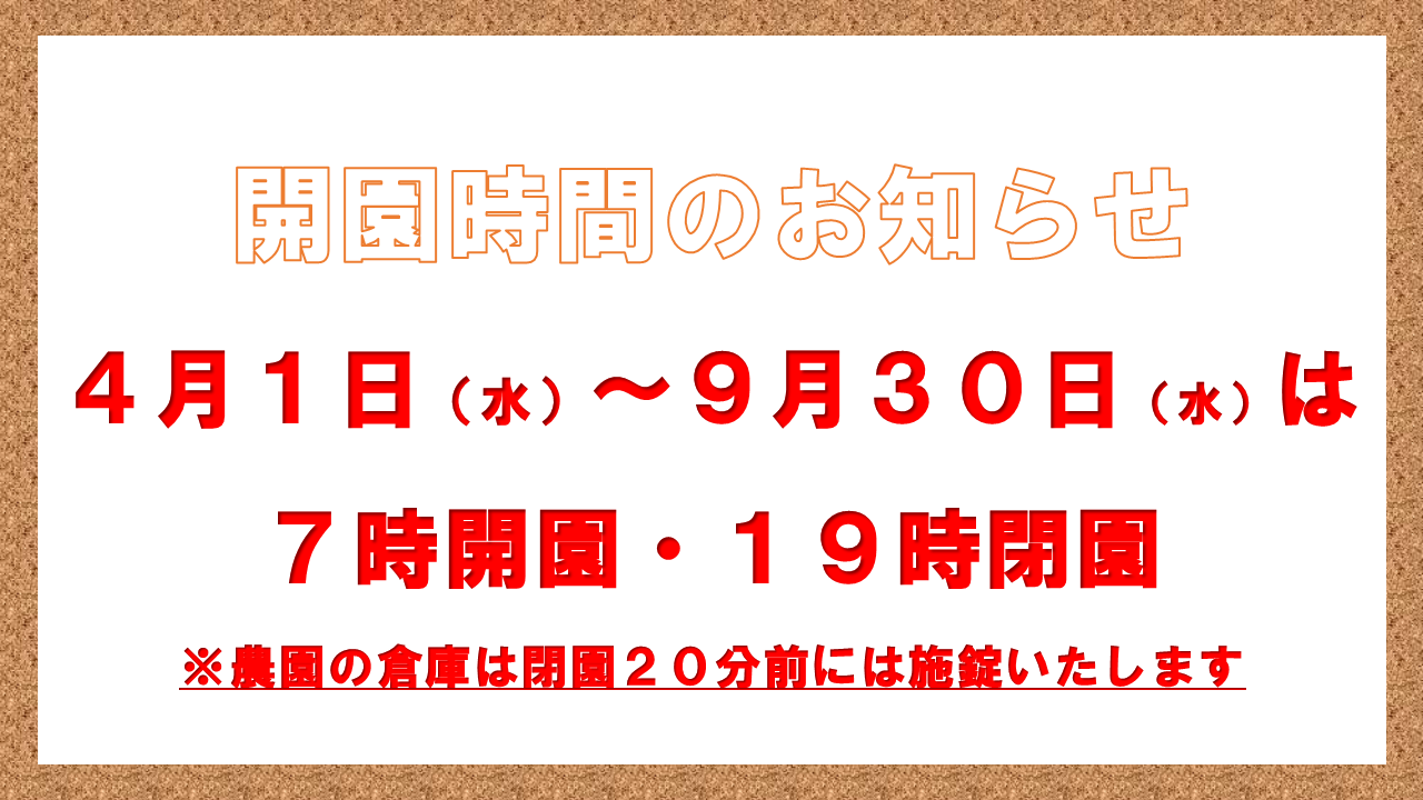 - 10月からの開園時間について